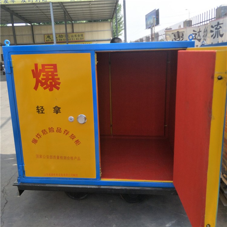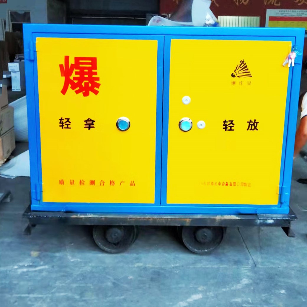 爆破材料的運輸需要由爆破工或者爆破工監(jiān)護(hù)下運送,并存放在抗撞,防震,耐壓和防靜電的容器內(nèi),這款適合井下爆破器材運輸車是由上下兩個部分組成,上部分為存儲功能的防爆柜,柜體使用不低于6mm厚的鋼板制作而成,內(nèi)部加護(hù)一層10mm厚絕緣木板,最里層是防靜電阻燃?xì),存放柜結(jié)構(gòu)合理,密封性較好,有效防潮防靜電,門上裝配有兩把鎖具和一個機(jī)械式密碼鎖,鑰匙需2人分開保管,存放安全,防盜性能突出,下部分為承載運輸柜的礦車部分,按照礦井常用軌距,可分為600,762,900軌距,多輛車之間使用插銷和三環(huán)鏈連接,比普通礦車運輸危險品更有安全保障。