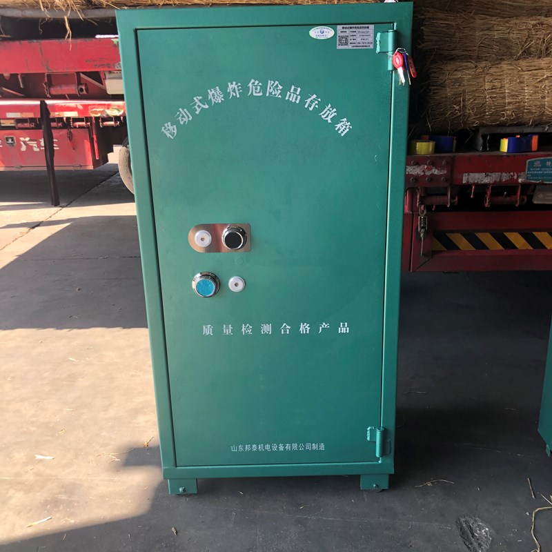 爆炸物品存放,需使用專業(yè)的存放箱柜或者庫(kù)房,要求使用有防火、防爆、防撞擊、防靜電這些特性的材料,便攜式存放箱適用于存放少量的爆炸物品,炸藥一般在1件以內(nèi),存放量再多,重量增加,就不便于人力背運(yùn)了。存放量較多,可以使用存放柜體,規(guī)格可根據(jù) 需要的存放量選擇,也可以放置在車上進(jìn)行運(yùn)輸,柜體材質(zhì)為加厚鋼板+絕緣木板+防靜電阻燃?xì)謮|,國(guó)標(biāo)要求門板厚度不得低于6mm厚,內(nèi)部材料做防靜電處理,門扇安裝有兩把十字鎖具和一把機(jī)械密碼鎖,有效防盜,保障存放安全性