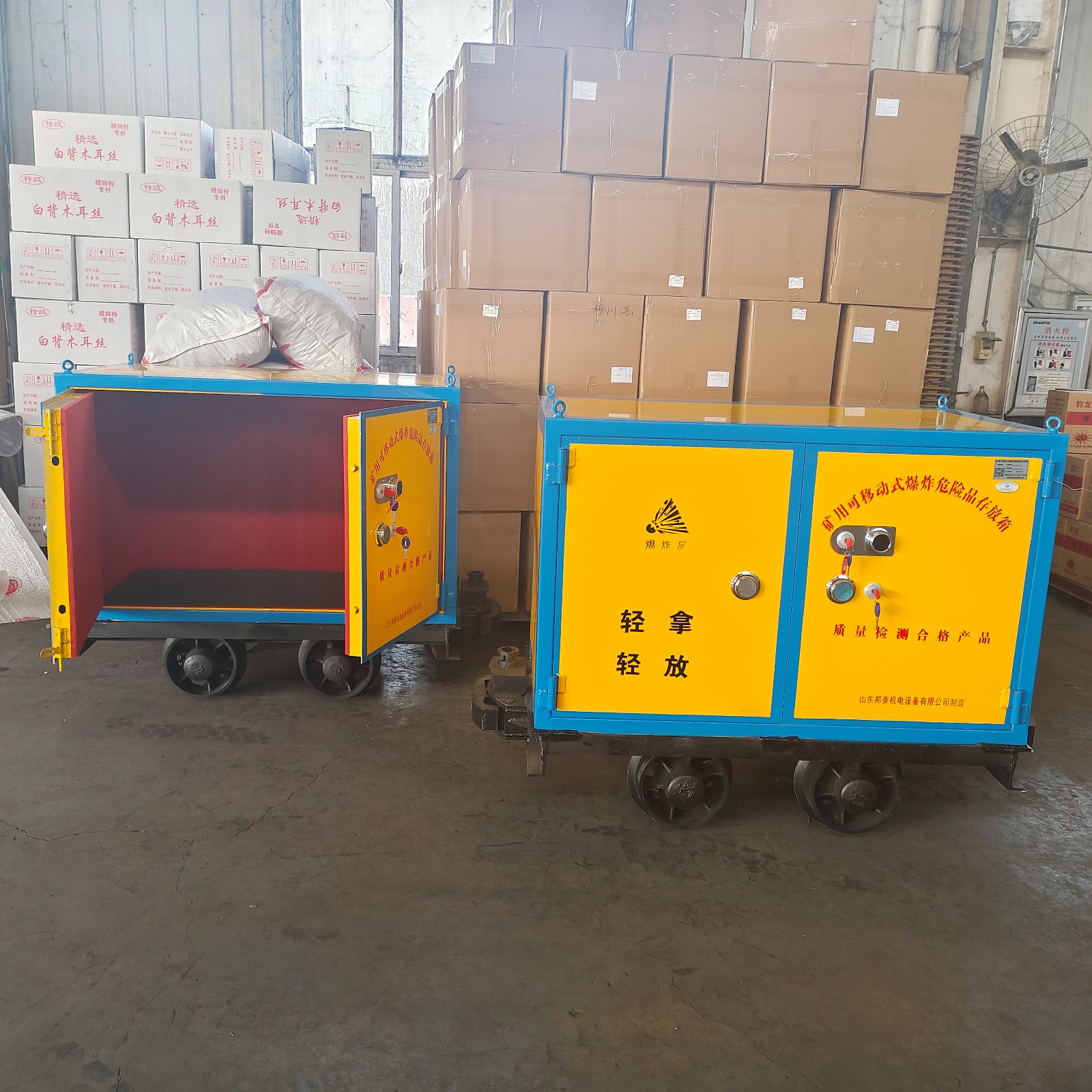 集存放和運(yùn)輸為一體,滿足各類礦山井下運(yùn)輸火工品的需求,滿足火工品存放防爆,防靜電,防震的要求。利用井下牽引機(jī)車來實(shí)現(xiàn)行駛,多輛運(yùn)輸車廂之間使用插銷和三環(huán)鏈來實(shí)現(xiàn)鏈接。