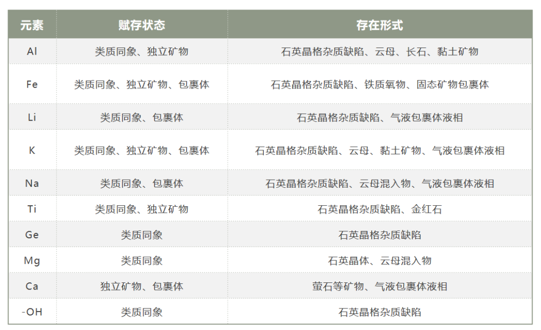 石英中雜質(zhì)賦存狀態(tài)