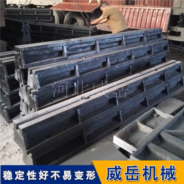 為了加強(qiáng)地槽鐵的承載能力,減少地槽鐵在重荷下容易產(chǎn)生變形。由于設(shè)置了加強(qiáng)筋,能夠提高鐵地板鑄鐵模的結(jié)構(gòu)強(qiáng)度,有利于防止其因內(nèi)應(yīng)力太大而開裂。并且由于本體采用了鑄鋼材料,增加了鑄地槽鐵鐵?篃崦浝淇s的強(qiáng)度,并且即使發(fā)生開裂,也易對其裂縫進(jìn)行焊接修補(bǔ),復(fù)使用,大大延長了使用壽命。威岳機(jī)械謝女士15350773479