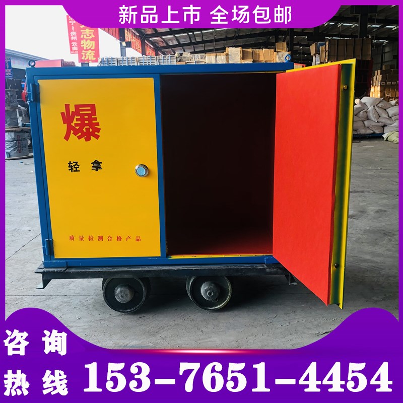 礦山井下生產(chǎn)的一款專門放置導(dǎo)爆管,電雷管,炸藥,爆破火工品等爆破器材的儲(chǔ)運(yùn)柜。全稱為:“礦井軌道炸藥運(yùn)輸車”。運(yùn)輸車主要分為兩部分組成; 第一部分是爆炸危險(xiǎn)品存放柜,柜 子 6.0mm-8.0mm 厚防爆鋼板,內(nèi)置10.0mm 防靜電木板和1.0mm 厚防火 防震的阻燃?xì)。另一部分為專用礦車,輪對(duì)軌距為標(biāo)準(zhǔn) 600mm 軌距。 運(yùn)輸車滿足大部分有軌