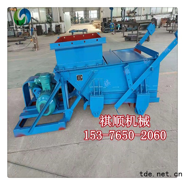 K型給料機(jī)由機(jī)架、底板(給料槽)、傳動(dòng)平臺(tái)、漏斗、閘門、托輥組成,當(dāng)電機(jī)開動(dòng)后經(jīng)彈性聯(lián)軸器,減速機(jī)、曲柄連桿機(jī)構(gòu)拖動(dòng)傾斜5度的底板,在輥上作直線往復(fù)運(yùn)動(dòng),把煤或其它磨琢性小,粘性不大的松散粒狀,粉狀物料從給料設(shè)備中均勻地卸到受料設(shè)備中