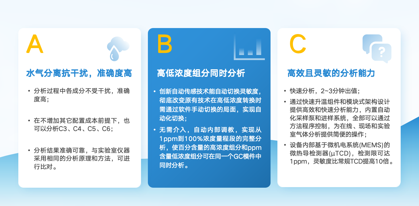 在線微型快速氣相色譜儀在2-3分鐘內(nèi),即可完成一次樣品的準確定性定量分析。分析的結(jié)果通過4G網(wǎng)絡(luò)上傳至服務(wù)器,服務(wù)器上安裝數(shù)據(jù)分析軟件,進行實時監(jiān)控,并提供報警信息和提示。