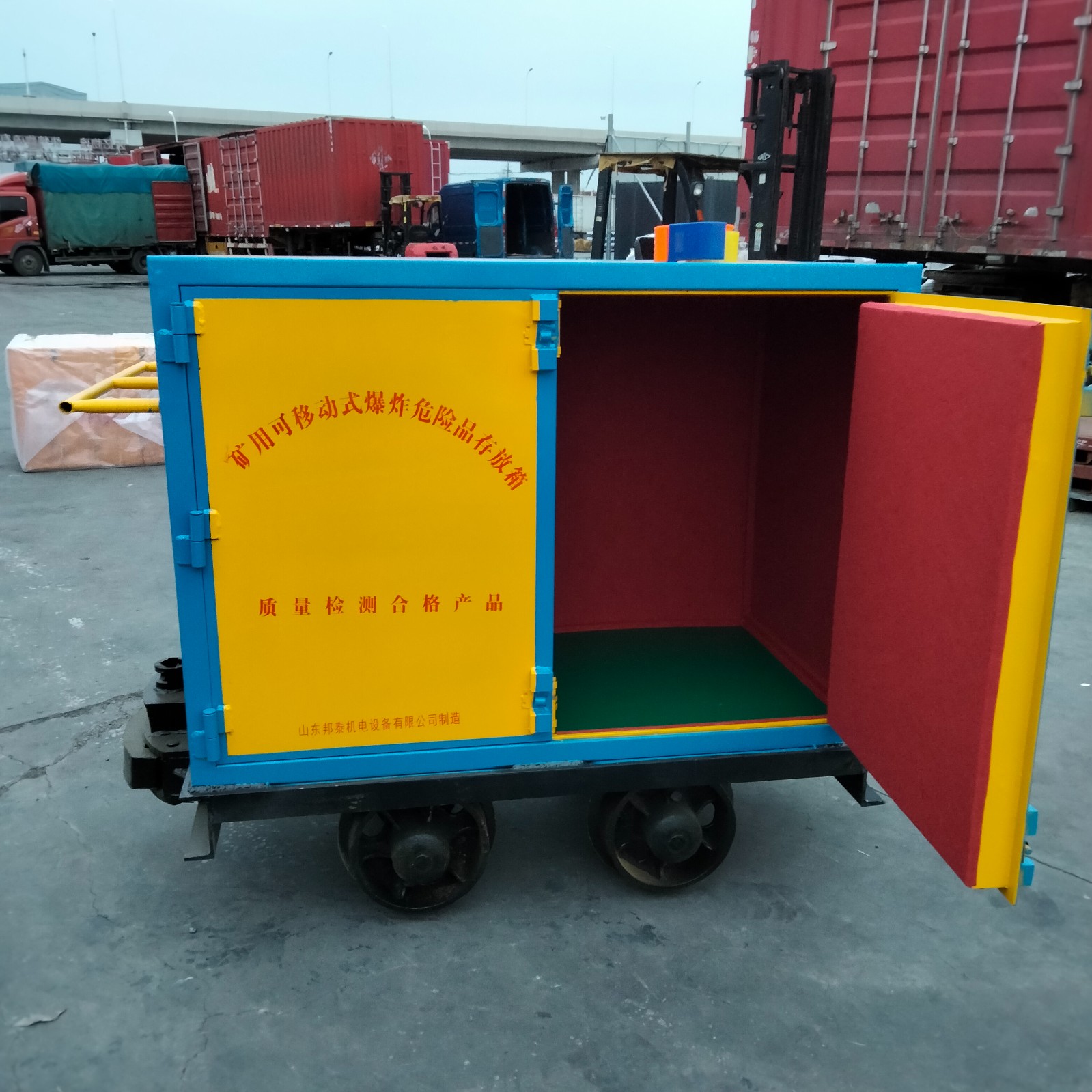民爆器材運(yùn)輸車通常采用有軌運(yùn)輸模式,直接從礦上固定庫房把爆破器材運(yùn)送至井下臨時(shí)存放地點(diǎn)或作業(yè)面,有效提高了運(yùn)輸效率,節(jié)約了運(yùn)輸時(shí)間,減少了運(yùn)輸過程中意外情況的發(fā)生。車輛的廂體內(nèi)部做防靜電處理,底部和前部鋪有阻燃導(dǎo)靜電膠板,并與底盤等電位連接,通過車輛后端的導(dǎo)靜電裝置來確保安全。此外,廂體由加厚優(yōu)質(zhì)鋼板制成,具有極高的強(qiáng)度和抗沖擊能力,能夠抵御各種惡劣環(huán)境。