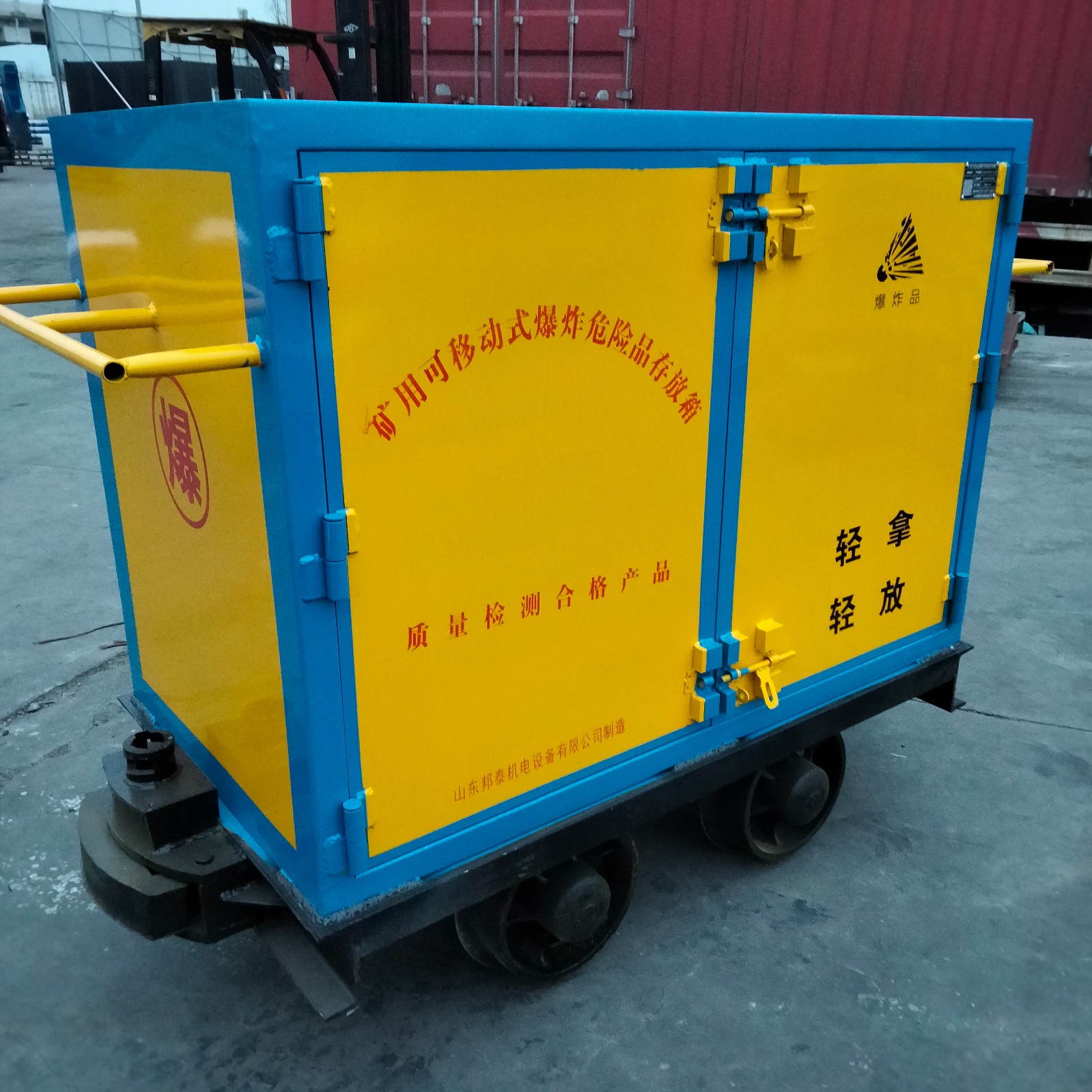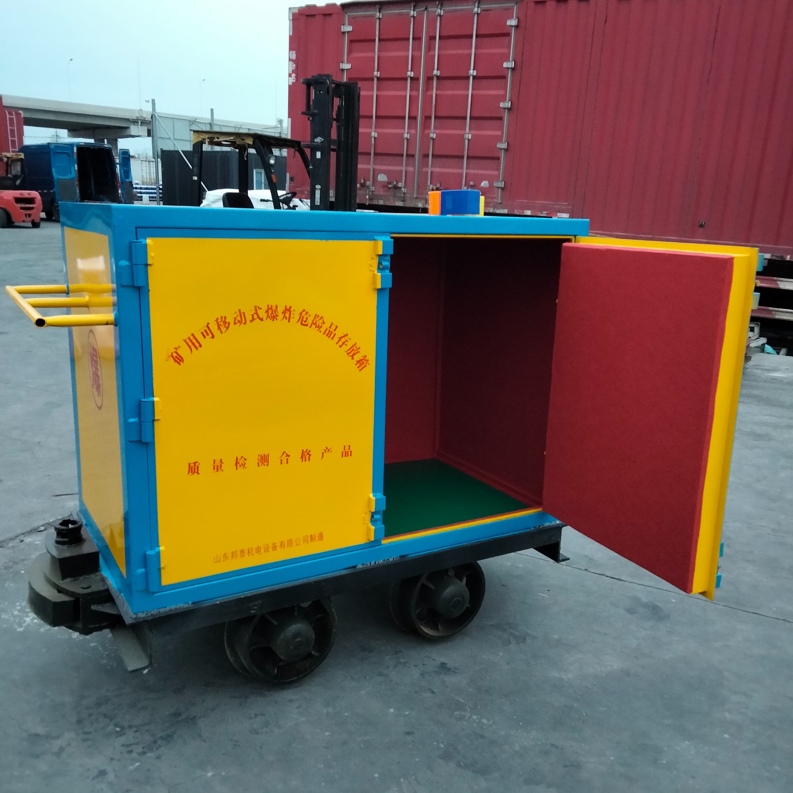 礦用可移動(dòng)式火工品箱采用防爆和防靜電材料,通常由冷軋鋼板材質(zhì)制作成型,能夠有效隔離和抵御外界外力造成的柜體破損。內(nèi)部鋪設(shè)防靜電阻燃?xì)謮|,能有效防止產(chǎn)生靜電而發(fā)生化學(xué)反應(yīng),造成危險(xiǎn)后果。