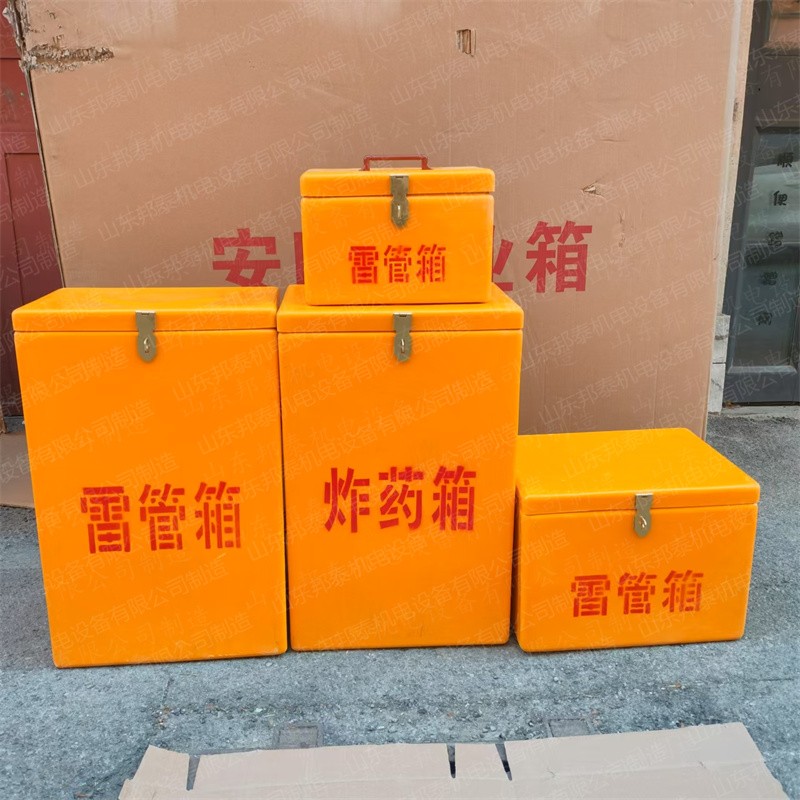 相對(duì)于防爆鋼板材質(zhì)雷管箱和炸藥箱,玻璃鋼炸藥箱雷管箱具有更好的抗靜電,防火性能,并且更加輕便,方便工人攜帶和使用。