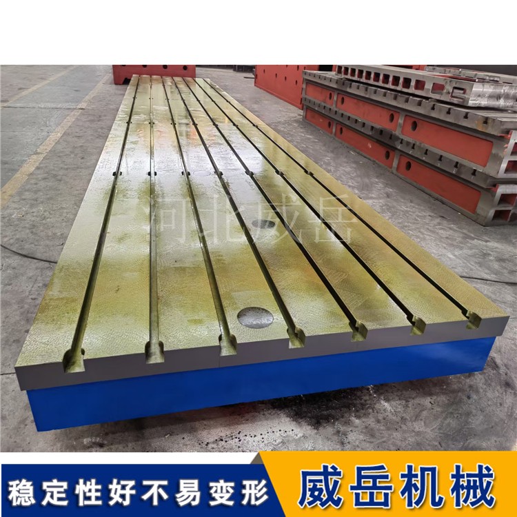通過鎂合金變質(zhì)處理,球墨鑄鐵中的石墨呈球狀結構,使其機械性能顯著提升。QT450-10材質(zhì)的T型槽平臺兼具450MPa抗拉強度和10%延伸率,特別適合振動較大的沖壓設備安裝。某重型機械廠實測數(shù)據(jù)顯示,同等載荷下QT系列平臺的使用壽命比HT系列延長40%。這類平臺表面通常經(jīng)過高頻淬火處理,槽口硬度可達45以上,但價較灰鑄鐵高出30%-50%。