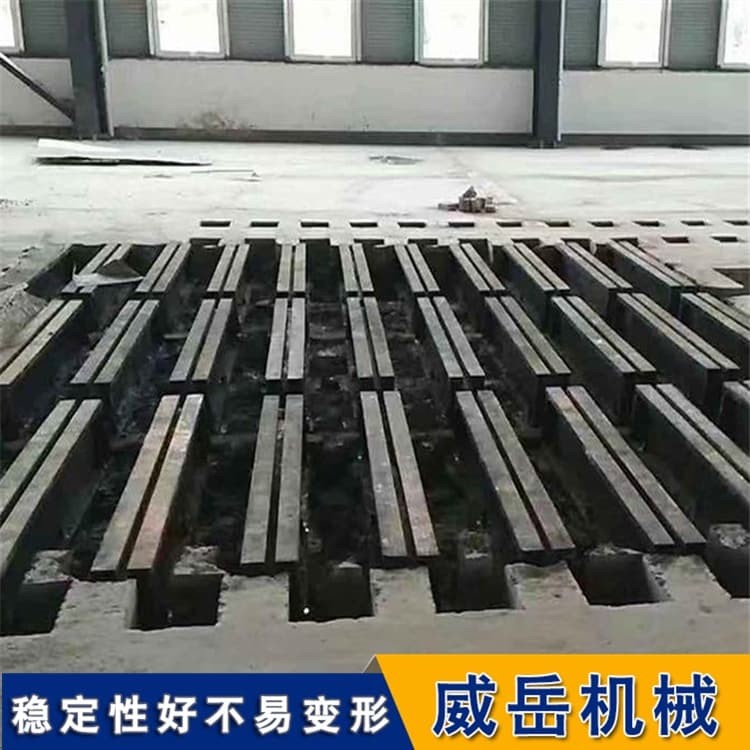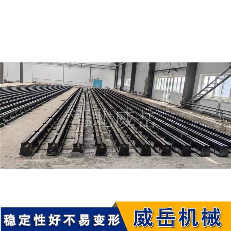 材質(zhì)技術(shù)要求:優(yōu)先選用HT300灰鑄鐵或QT500-7球墨鑄鐵,HT300抗拉強(qiáng)度≥300MPa、硬度180-250HBW,能承受長期重載而無塑性變形;QT500-7沖擊韌性≥7J/cm2,適合高頻振動的設(shè)備(如大型電機(jī)試驗(yàn)臺)。材質(zhì)需經(jīng)“自然時效12個月+人工時效300℃×10小時”處理,內(nèi)應(yīng)力殘留量≤50MPa,避免后期因應(yīng)力釋放導(dǎo)致精度漂移。
