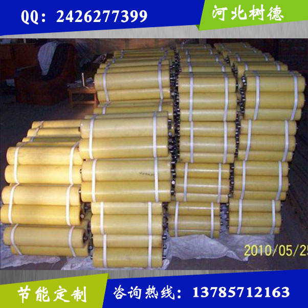 4.緩沖托輥有彈簧板型托輥、緩沖圈型托輥、強(qiáng)力緩沖型托輥、可調(diào)彈力型托輥、吊掛型托輥等;陶瓷托輥陶瓷托輥簡稱瓷托輥,此產(chǎn)品不僅具有耐磨、耐酸堿鹽、抗氧化,運(yùn)行穩(wěn)定,防盜等特點(diǎn),而且陶瓷托輥可有效防止皮帶跑偏,減少皮帶的局部損失,延長皮帶使用壽命減少了頻繁更換托輥在露天惡劣環(huán)境下使用,陶瓷托輥要比普通托輥壽命長的多。陶瓷托輥強(qiáng)度高,耐磨性能好。陶瓷托輥使用壽命長 ,且能減少皮帶磨損。耐高溫、抗氧化,抗腐蝕性能強(qiáng),陶瓷托輥適宜于各種惡劣環(huán)境。 無靜電,磨損碰撞時(shí)不易產(chǎn)生火花 , 陶瓷托輥適宜于煤井等易環(huán)境。性能穩(wěn)定, 能有效防止皮帶運(yùn)輸機(jī)跑偏、拉叉、發(fā)熱起火。 尼龍托輥尼龍托輥:磨擦系數(shù)低,耐磨,不易損傷皮帶。自潤滑性優(yōu)良,使用過程中,無需注油而能在惡劣的環(huán)境條件下運(yùn)轉(zhuǎn),不易卡死,有較好的防磁特性?垢g性,抗老化性強(qiáng),耐弱酸,弱堿和有機(jī)溶劑的腐蝕,不毒不污染能承受反復(fù)沖擊和震動(dòng)。尼龍托輥本身重量輕,只有金屬件的三分之一,安裝方便,維修率低噪音小,運(yùn)轉(zhuǎn)平穩(wěn),節(jié)能,可提高使用周期尼龍托輥防塵,防水性能好,在多揚(yáng)灰環(huán)境中使用,不易進(jìn)水。樹德托輥生產(chǎn)的尼龍托輥規(guī)格型號(hào)齊全,可生產(chǎn)直徑,長度,特殊規(guī)格可按需定制。