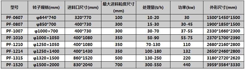 反擊式破碎機(jī)技術(shù)參數(shù)