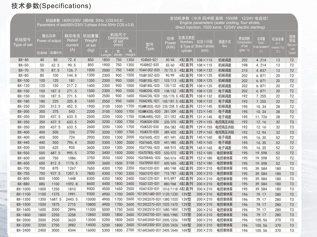 三、玉柴發(fā)電機(jī)組參數(shù):