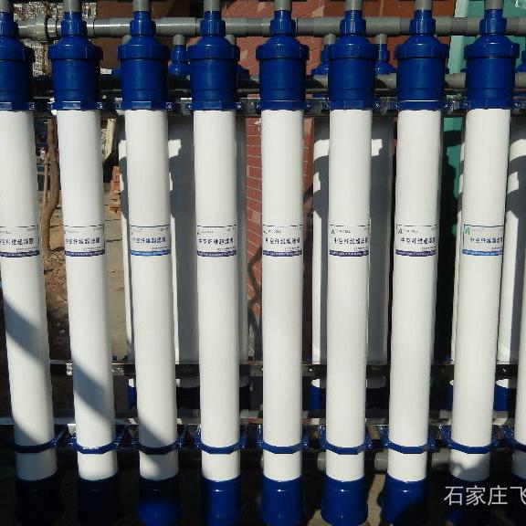 超濾的功能主要是去除微生物細(xì)菌、大腸桿菌、病毒、各種膠體微粒、蛋白質(zhì)、熱源體和大分子有機(jī)物等,膜組件結(jié)構(gòu)緊湊,膜絲機(jī)械強(qiáng)度和伸展性高,平均截留孔徑分布均勻等特點,被廣泛用于各個行業(yè)和領(lǐng)域的凈化、分離、濃縮和提純。