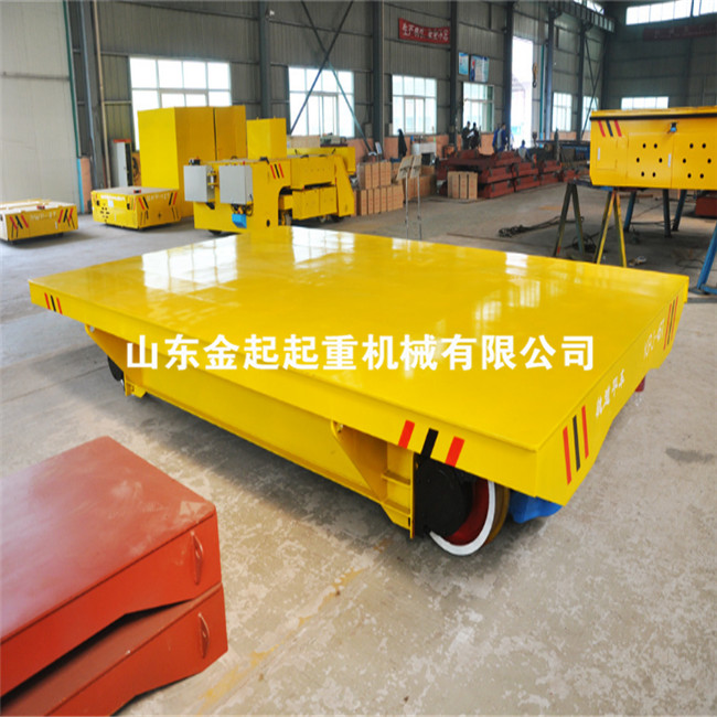 電動平車,又稱電動平板車、電平車、臺車、過跨車、電動軌道車、地爬車等,是一種廠內有軌電動運輸車輛,首先它是一種軌道型運輸車輛,需要在地面上鋪設軌道,軌道一般為工字型面接觸道軌;其次它是電驅動車輛,在電機減速機驅動下自動運行,再次它是一種平板車,臺面平整無廂蓋,特殊情況下也可以是非平面但無廂蓋,車體無方向盤只有前進后退方向(即使轉彎也城靠軌道轉彎)。此種車輛具有結構簡單、使用方便、承載能力大、不怕臟不怕砸、維護容易、使用壽命長等特點,因其方便、壯實、經濟、實用、易清理等諸多優(yōu)點,成為企業(yè)廠房內部及廠房與廠房之間短距離定點頻繁運載重物的**運輸工具。