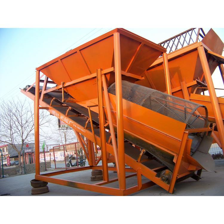整個設備由原料儲料斗、原料供料皮帶機、平置篩網(wǎng)、成品砂堆料皮帶、棄石出料槽等組成,設備通電運轉后由裝載機將原料裝入大容量儲料斗,原料經(jīng)由供料皮帶投入到平置篩筒,旋轉的篩筒帶動原料在筒內(nèi)葉片的推擠、翻滾下形成原料在篩網(wǎng)面滑滾的人工篩砂效果,篩出的成品砂通過集料斗落在成品砂皮帶上,同時被皮帶提升落下呈成品料堆、或直接落入儲料斗,整個過程連續(xù)且物料分級清楚、準確。