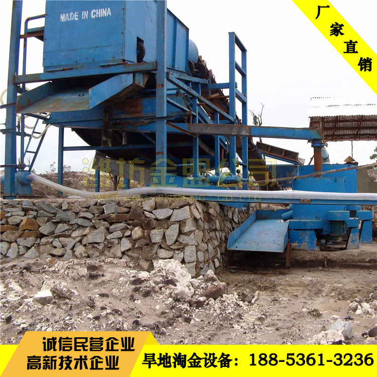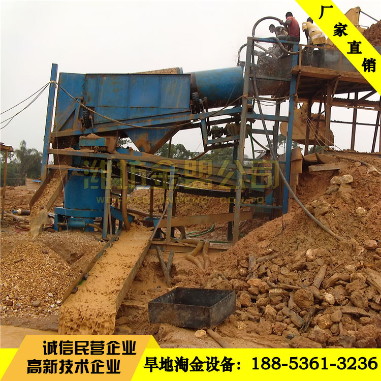 旱地淘金設備,它有著結(jié)構(gòu)緊湊、整體性強、重量輕、處理量大、操作簡單、工作可靠,且易維護、移動方便等特點。