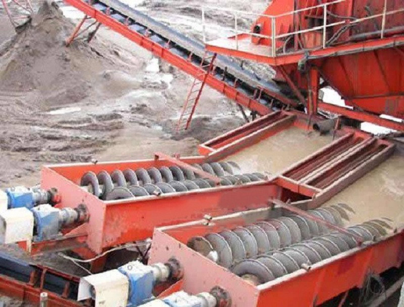 洗礦機(jī)是利用水的浮力作用,將粉塵和雜質(zhì)于砂分離。經(jīng)過螺旋片的攪動,達(dá)到濾水去雜質(zhì),提升輸送目的。并且在提升過程中,也進(jìn)行了拌和工作。是出砂達(dá)到攪拌均勻,無細(xì)、粗砂之分。螺旋洗礦機(jī)特點及工作原理: