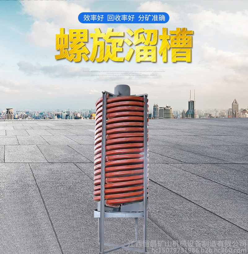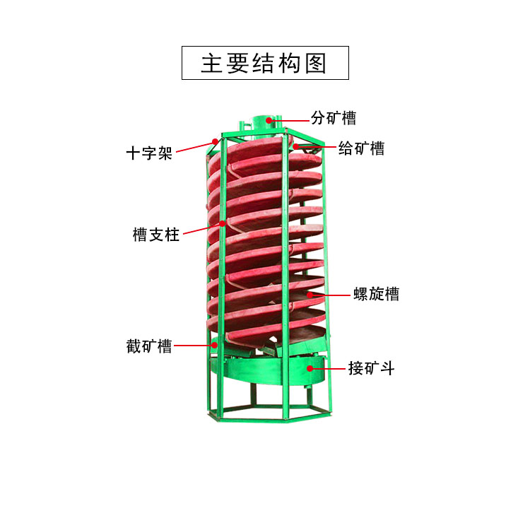 組成。由螺旋片聯(lián)接成的螺旋槽是主要部件。螺旋片是由玻璃鋼(玻璃纖維增強(qiáng)塑料)制成,借螺栓接在一起,螺旋槽的選別面有一層預(yù)制的耐磨層。它具有質(zhì)輕、堅(jiān)固、經(jīng)久耐用消費(fèi)品的優(yōu)點(diǎn)。螺旋槽的上方設(shè)有多管給礦勻分器分礦均勻,控制簡(jiǎn)便