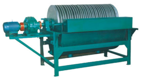 礦漿經(jīng)給礦箱流入槽體后,在給礦噴水管的水流作用下,礦粒呈松散狀態(tài)進(jìn)入槽體的給礦區(qū)。在磁場(chǎng)的作用,磁性礦粒發(fā)生磁聚而形成“磁團(tuán)”或“磁鏈”,“磁團(tuán)”或“磁鏈”在礦漿中受磁力作用,向磁極運(yùn)動(dòng),而被吸附在圓筒上。由于磁極的極性沿圓筒旋轉(zhuǎn)方向是交替排列的,并且在工作時(shí)固定不動(dòng),“磁團(tuán)”或“磁鏈”
