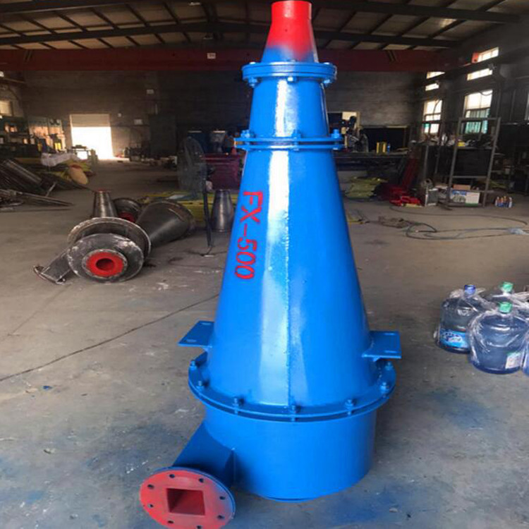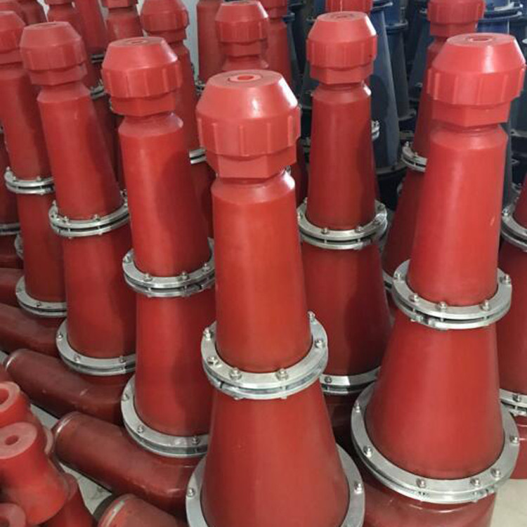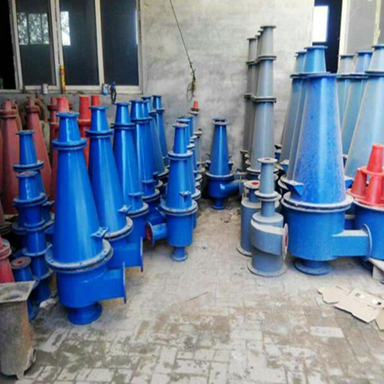 旋流器的基本原理是將具有一定密度差的液-液、液-固、液-氣等兩相或多相混合物在離心力的作用下進(jìn)行分離。將混合液以一定的壓力切向進(jìn)入旋流器,在圓柱腔內(nèi)產(chǎn)生高速旋轉(zhuǎn)流場(chǎng);旌衔镏忻芏却蟮慕M分在旋流場(chǎng)的作用下同時(shí)沿軸向向下運(yùn)動(dòng),沿徑向向外運(yùn)動(dòng),在到達(dá)錐體段沿器壁向下運(yùn)動(dòng),并由底流口排出,這樣就形成了外旋渦流場(chǎng);密度小的組分向中心軸線方向運(yùn)動(dòng),并在軸線中心形成一向上運(yùn)動(dòng)的內(nèi)渦旋,然后由溢流口排出,這樣就達(dá)到了兩相分離的目的。