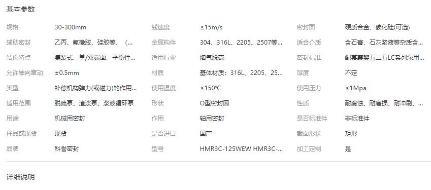 二、HMR3系列脫硫泵專用機(jī)械密封是配套與五二五泵業(yè)的專用產(chǎn)品,軸徑有HRM-82、HRM-97、HRM-125、HRM-142、HRM-158、HRM-175、HRM-198。