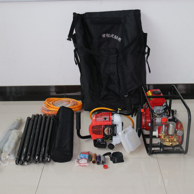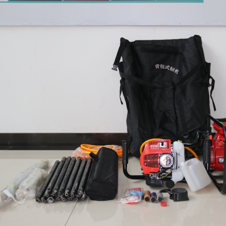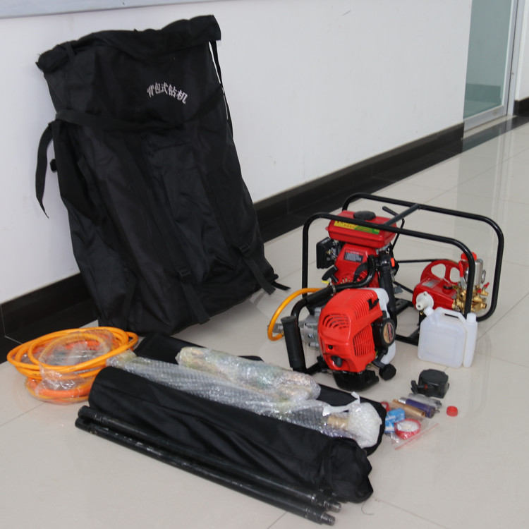 整套鉆機(jī)及相關(guān)配件裝入背包后,一套標(biāo)準(zhǔn)配備的便攜式鉆機(jī)及其附件的普通成年人輕松負(fù)擔(dān)。