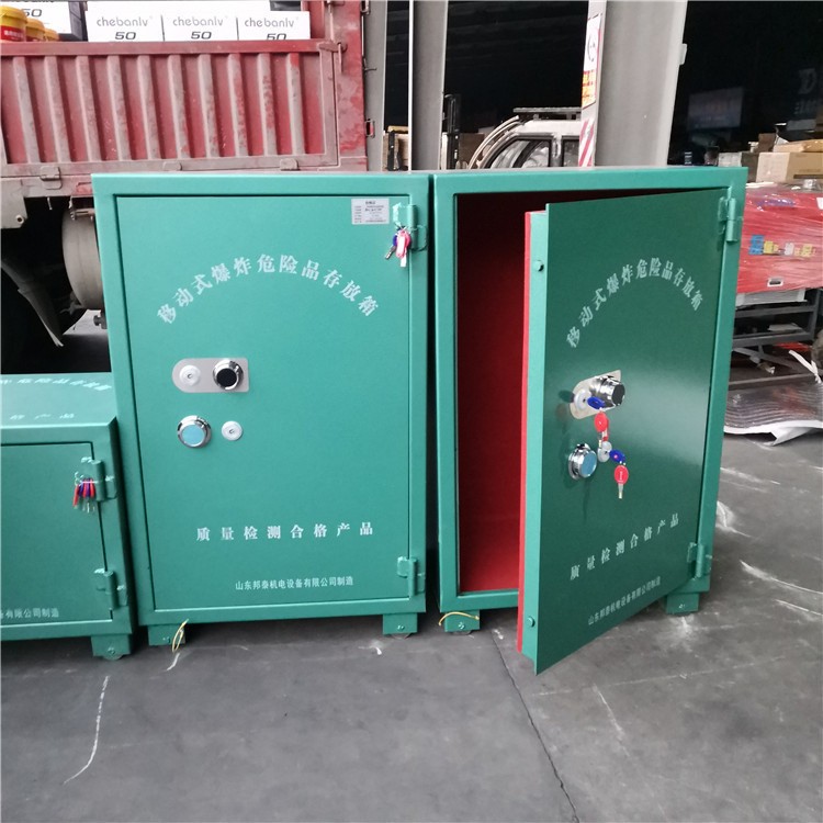 爆炸危險品存放柜依照其功能用作雷管、炸藥、火藥等系列危險物品的存儲,其外形為6-8mm防爆鋼板,內(nèi)層附有10mm絕緣木板及2mm防靜電阻燃墊,同時根據(jù)國標(biāo)防盜要求成功實現(xiàn)雙鎖聯(lián)動聯(lián)動功能。外觀大方并經(jīng)久耐用,門框為加厚鋼質(zhì)內(nèi)折門框,門面為高質(zhì)量表面處理的門面,經(jīng)過了精心的磷化處理使其更具耐腐性,進口噴涂流水線,高壓靜電粉體噴涂,高溫烘烤使產(chǎn)品色澤光亮,附著力強,超厚門扇,雙重防撬扣邊,全方位防撬,防盜。