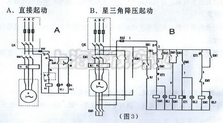 RJ-熱過載電器 .KM-交流接觸器 BXS-熔斷器 P-壓力開關 QK-外接開關 KT-時間繼電器 HL-信號燈