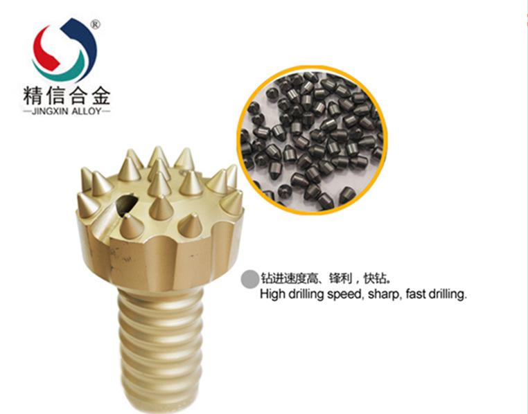 螺紋聯(lián)接柱齒主要是與液壓鑿巖機(jī)(或風(fēng)動鑿巖機(jī))及液壓釬桿(風(fēng)動釬桿)配套使用的一種鉆頭,通過不同形式的螺紋與釬桿配合,進(jìn)行鑿孔作業(yè),鉆頭直徑由¢32-¢203mm,主要應(yīng)用于地下礦山的開采,露天礦山的開采,鋼廠的高爐開口等領(lǐng)域.速度快,修磨方便.