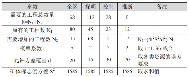 允許方差范圍,根據(jù)常規(guī)經(jīng)驗值,全區(qū)按20%,探明資源量按15%,控制資源量30%,推斷資源按70%來計算。