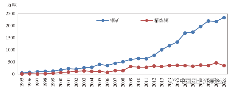 圖2 1995—2021年我國銅精礦和精煉銅進(jìn)口量趨勢