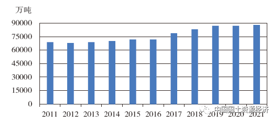 我國銅礦資源的突出特點(diǎn)是中小型礦床多,大型、超大型礦床少,而且共伴生礦多、單一礦少,這些特點(diǎn)使得我國銅礦山建設(shè)規(guī)模普遍偏小,且經(jīng)過幾十年的強(qiáng)化開采,部分礦山資源儲量大幅減少,有的甚至已接近枯竭。雖然早年國家曾大力發(fā)展銅礦業(yè),但是成效并不顯著。從歷史情況看,從2005年開始,全國銅精礦和精煉銅產(chǎn)量增長比較明顯,呈現(xiàn)穩(wěn)步上升趨勢,但2016年以后,受各種復(fù)雜因素綜合影響,一些中小型礦山關(guān)閉,少數(shù)大型礦山甚至也因此而階段性生產(chǎn)受限,采礦成本相應(yīng)增加。2021年,受價格高位運(yùn)行驅(qū)動,銅精礦年產(chǎn)量恢復(fù)增長至185.5萬噸,雖然較2020年增長7.3%,但是絕對產(chǎn)量規(guī)模基本與2016年保持在同一水平。與此同時,全國精煉銅產(chǎn)量增長很快,2021年產(chǎn)量為1048.8萬噸,較2020年增長4.7%。由于國內(nèi)銅精礦僅能滿足精煉產(chǎn)能需求的17.7%,導(dǎo)致2021年我國凈進(jìn)口銅礦砂(實(shí)物量)達(dá)2340.39萬噸,較2020年增長7.4%。