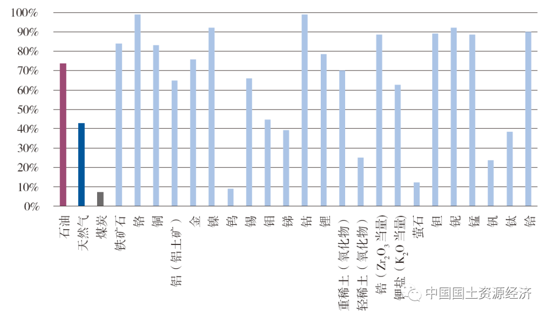 圖1 中國主要戰(zhàn)略性金屬礦產(chǎn)的對外依存度