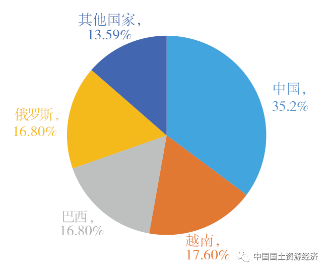 圖2 全球稀土資源儲(chǔ)量分布及占比