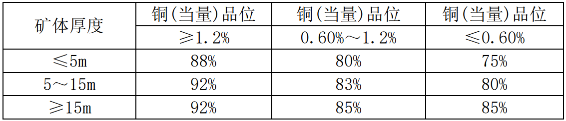 在我國,礦產(chǎn)資源屬國家所有,礦山開采不得采富棄貧,國家制定了“三率”指標中,有明確的規(guī)定。如銅礦地下開采時開采回采率指標要求: