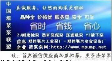 中國河南優(yōu)質(zhì)洗煤選礦用渣漿泵**產(chǎn)品ZLX2型壓濾機(jī)泵,盾構(gòu)機(jī)、泥漿噴播機(jī)配套專用渣漿泵,YZ型高效節(jié)能液下渣漿泵規(guī)模制造廠--- 鄭州聯(lián)興工業(yè)泵廠,專注于工業(yè)渣漿泵生產(chǎn)研發(fā),是國內(nèi)洗煤選礦渣漿泵,ZJ型系列耐磨蝕雜質(zhì)泵、介質(zhì)泵、渣滓泵,ZLX型系列工礦業(yè)用渣漿泵、耐磨渣質(zhì)泵;中國**產(chǎn)品ZLX2型零泄漏板框壓濾機(jī)專用泵;節(jié)能YZ型自吸式液下渣漿泵,耐酸堿渣漿泵及耐磨蝕渣漿泵及配件專業(yè)生產(chǎn)制造廠,是華北及中原地區(qū)工礦業(yè)渣漿泵雜質(zhì)泵、耐磨蝕礦漿泵,自助式箱式壓濾機(jī)專用泵,特種工礦離心泵,離心式渣漿泵,自控型自吸式液下渣漿泵,洗選礦泵,重介質(zhì)礦漿泵,耐腐脫硫泵,耐高溫循環(huán)泵,耐磨砂漿泵濃漿泵泥漿泵,污水泵等節(jié)能耐磨工業(yè)渣漿泵,耐磨渣漿泵配件,耐磨蝕渣漿泵易損件、過流件及各種水泵設(shè)備耐磨配件的規(guī)模制造生產(chǎn)企業(yè)。河南聯(lián)興實(shí)業(yè)·鄭州聯(lián)興冶金設(shè)備廠,是國內(nèi)生產(chǎn)冶金設(shè)備【煉鎂還原罐,煉鈣·鋅還原罐】,洗煤選礦成套設(shè)備·洗選壓濾設(shè)備,礦山成套設(shè)備,磨礦制粉機(jī),破碎機(jī)碎礦機(jī),砂石、石料生產(chǎn)線,煉鎂·鈣·鋅還原罐,壓球機(jī),冶金成套設(shè)備,木材、塑料、金屬易拉罐粉碎機(jī),榨油機(jī)**機(jī)通用成套系列設(shè)備的規(guī)模制造生產(chǎn)基地。河南聯(lián)興企業(yè)公司【官方網(wǎng)站 //www.mpump.net 】集科研、設(shè)計、研發(fā)、生產(chǎn)、銷售,配件供應(yīng)等服務(wù)為一體,擁有一批高素質(zhì)、精技術(shù)、經(jīng)驗(yàn)豐富的技術(shù)和管理精英。公司技術(shù)力量雄厚,管理水平先進(jìn),廣泛吸收國內(nèi)外**技術(shù)成果,創(chuàng)造性地開發(fā)出一系列具有國內(nèi)**水平的工礦業(yè)渣漿泵類高效優(yōu)質(zhì)產(chǎn)品。為洗煤,洗選礦,冶金,礦山,電力**,水利水務(wù),環(huán)保治污,排污治淤,火電脫硫,石油化工,市政、交通,建材等行業(yè)用戶提供多種規(guī)格優(yōu)質(zhì)工礦業(yè)渣漿泵雑質(zhì)泵類產(chǎn)品,免費(fèi)提供渣漿水泵設(shè)備選型配套方案、技術(shù)咨詢及渣漿泵價格咨詢,長期廠價優(yōu)惠供應(yīng)渣漿泵配件、設(shè)備耐磨配件等完善系統(tǒng)的服務(wù),完全解除用戶后顧之憂。“精益求精,追求**”是企業(yè)的質(zhì)量方針,“**,用戶至上;誠信守約,貼心服務(wù)”是企業(yè)的宗旨,用戶的滿意,合作共贏是我們的永恒追求和最終目標(biāo)。