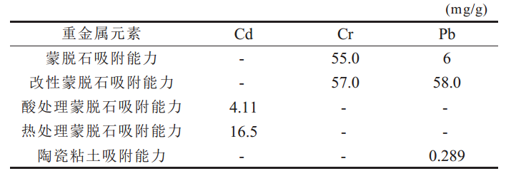 大量實驗結(jié)果表明,在室溫和 pH=4 條件下,蒙脫石對 Pb2+、Cd2+、Cr3+等重金屬離子的吸附率極高, 可達100%。