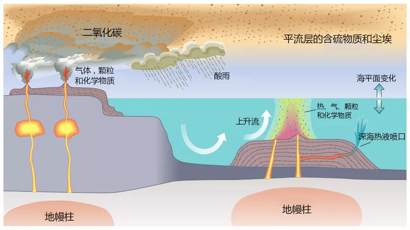 圖5:大火成巖省噴發(fā)伴隨的物理和化學(xué)效應(yīng)