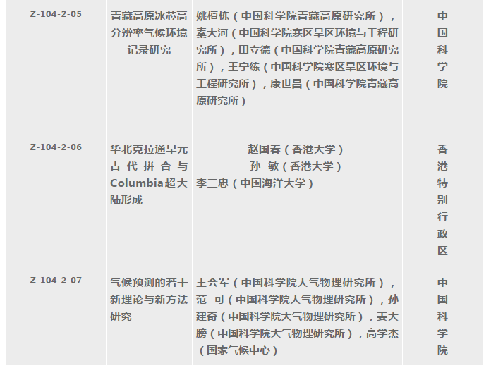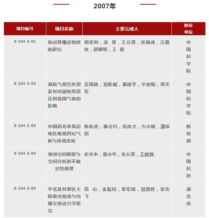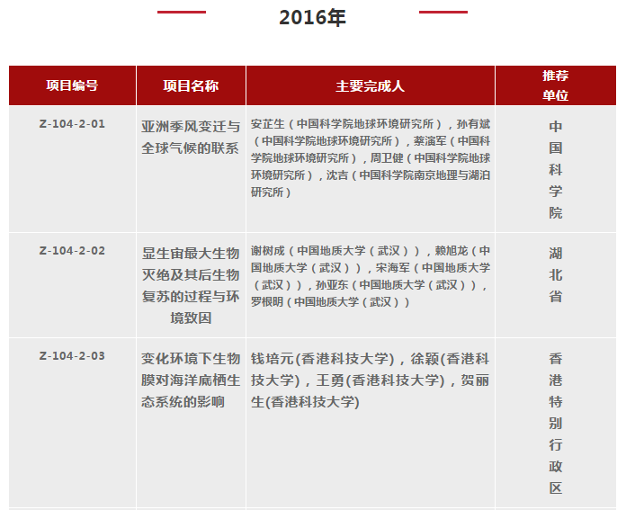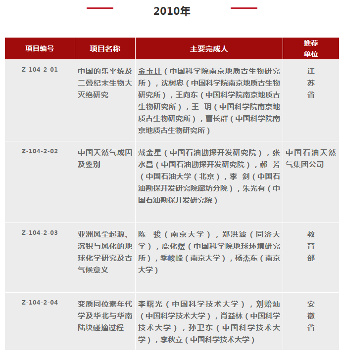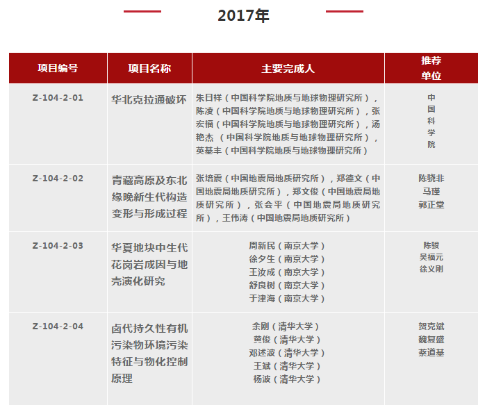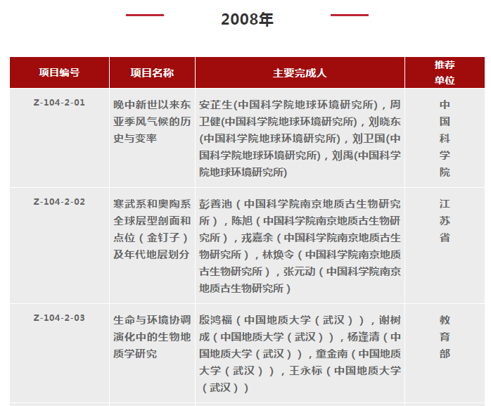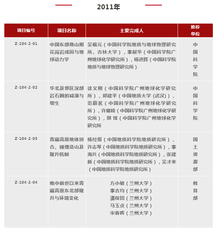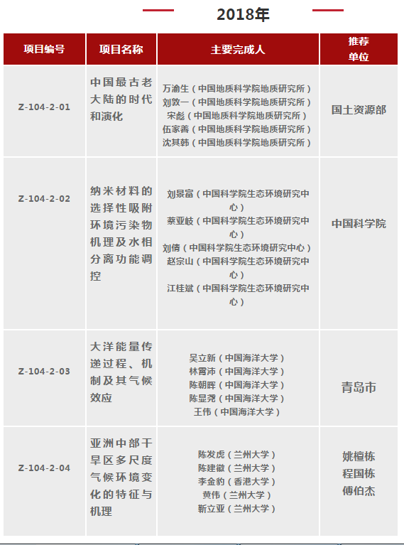 2000-2018年國(guó)家自然科學(xué)獎(jiǎng)地學(xué)科學(xué)組獲獎(jiǎng)清單