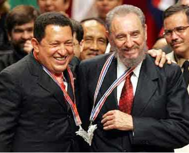 查韋斯與古巴卡斯特羅關系密切,卡斯特羅是古巴共和國、古巴共產(chǎn)黨和古巴革命武裝力量的主要締造者,是一位無產(chǎn)階級革命家及馬克思主義者。查韋斯受其理念影響較深,他不僅在國內(nèi)搞改革,還把觸角伸向整個拉美乃至更大的范圍,而針對美國他無時無刻不在進行他的戰(zhàn)斗: