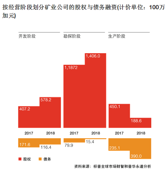 隨著礦業(yè)機遇的重現(xiàn),投資者興趣提高,但初級礦業(yè)公司仍必須通過競爭來博得關(guān)注。截至到2018年6月30日,在過去的12個月中,該行業(yè)共融資27億加元,較上年同期增長6.5%。其中近22億加元來自股權(quán)融資。大部分投資都流向了勘探和開發(fā)階段的公司,因為生產(chǎn)階段的礦業(yè)公司更多是依賴債務(wù)融資,其債務(wù)融資增加了65.9%。