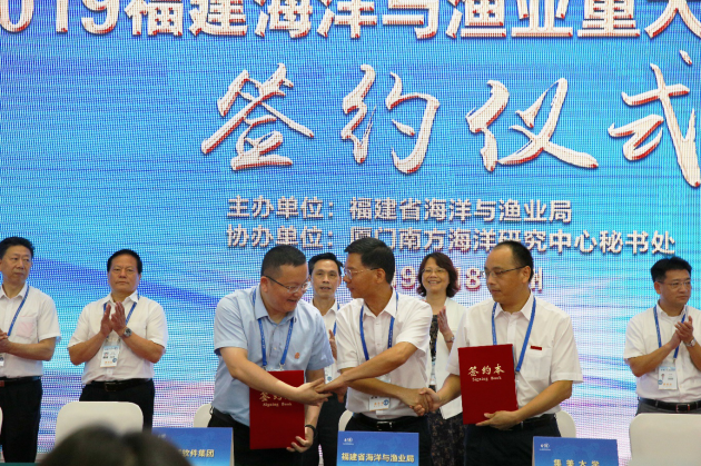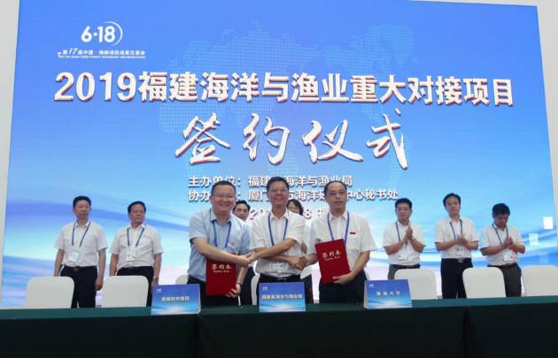 6月18日,2019年福建海洋與漁業(yè)重大對接項目簽約儀式在第十七屆中國·海峽項目成果交易會上召開。本次簽約儀式由福建省海洋與漁業(yè)局主辦、廈門市南方海洋研究中心秘書部協(xié)辦,海洋與漁業(yè)行政主管部門及平潭綜合試驗區(qū)農村發(fā)展局分管領導等出席了簽約儀式。福建省海洋與漁業(yè)局、集美大學與南威軟件集團于5月7日在第二屆數字中國建設峰會智慧分論壇上已正式啟動共建“智慧海洋平臺”。本次簽約儀式上,三方就共同推進福建省“智慧海洋”平臺建設簽訂了框架合作協(xié)議。