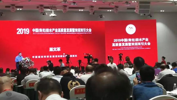 6月20日,由中國建筑防水協(xié)會、壽光市防水行業(yè)協(xié)會主辦的“2019中國(壽光)防水產(chǎn)業(yè)高質(zhì)量發(fā)展暨雙招雙引大會”在壽光市萬華酒店舉行。中國建筑防水協(xié)會、中國建材科學(xué)研究總院蘇州防水研究院、國家建材工業(yè)建筑防水材料產(chǎn)品質(zhì)量監(jiān)督檢驗(yàn)測試中心、中國硅酸鹽學(xué)會房建材料分會防水保溫材料專委會、中建材蘇州非礦院防水設(shè)計(jì)研究所、臺灣營建防水技術(shù)協(xié)進(jìn)會、韓國建筑施工學(xué)會、韓國首爾科技大學(xué)以及來自全國各地的行業(yè)協(xié)會、科研院校、新聞媒體、房地產(chǎn)商、原材料供應(yīng)商,加拿大、印度、泰國及港澳臺企業(yè)和協(xié)會全體會員單位等近千名嘉賓參會。