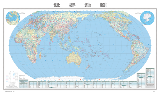 該地圖幅面尺寸為155cm*90cm,采用最新的地理信息數(shù)據(jù),表示了世界各國(guó)(地區(qū))國(guó)家級(jí)政區(qū)、首都首府和重要城市、主要河流、山峰山脈、主要群島和島嶼等要素。