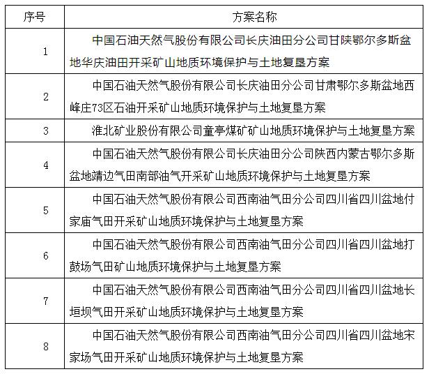 8個(gè)通過審查的礦山地質(zhì)環(huán)境保護(hù)與土地復(fù)墾方案名單