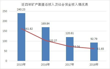 2019年5月20日,自然資源部發(fā)布《2018年全國(guó)地質(zhì)勘查成果通報(bào)》。數(shù)據(jù)顯示,礦產(chǎn)勘查投入資金92.79億元,同比減少23.1%。礦產(chǎn)勘查投入下降僅是近年來(lái)國(guó)內(nèi)礦業(yè)投資下降的一個(gè)方面,關(guān)于礦業(yè)投資下降的現(xiàn)象,既要客觀分析、理性看待,又要查明原因、優(yōu)化制度供給,這對(duì)于礦業(yè)投資者和管理者都具有積極意義。