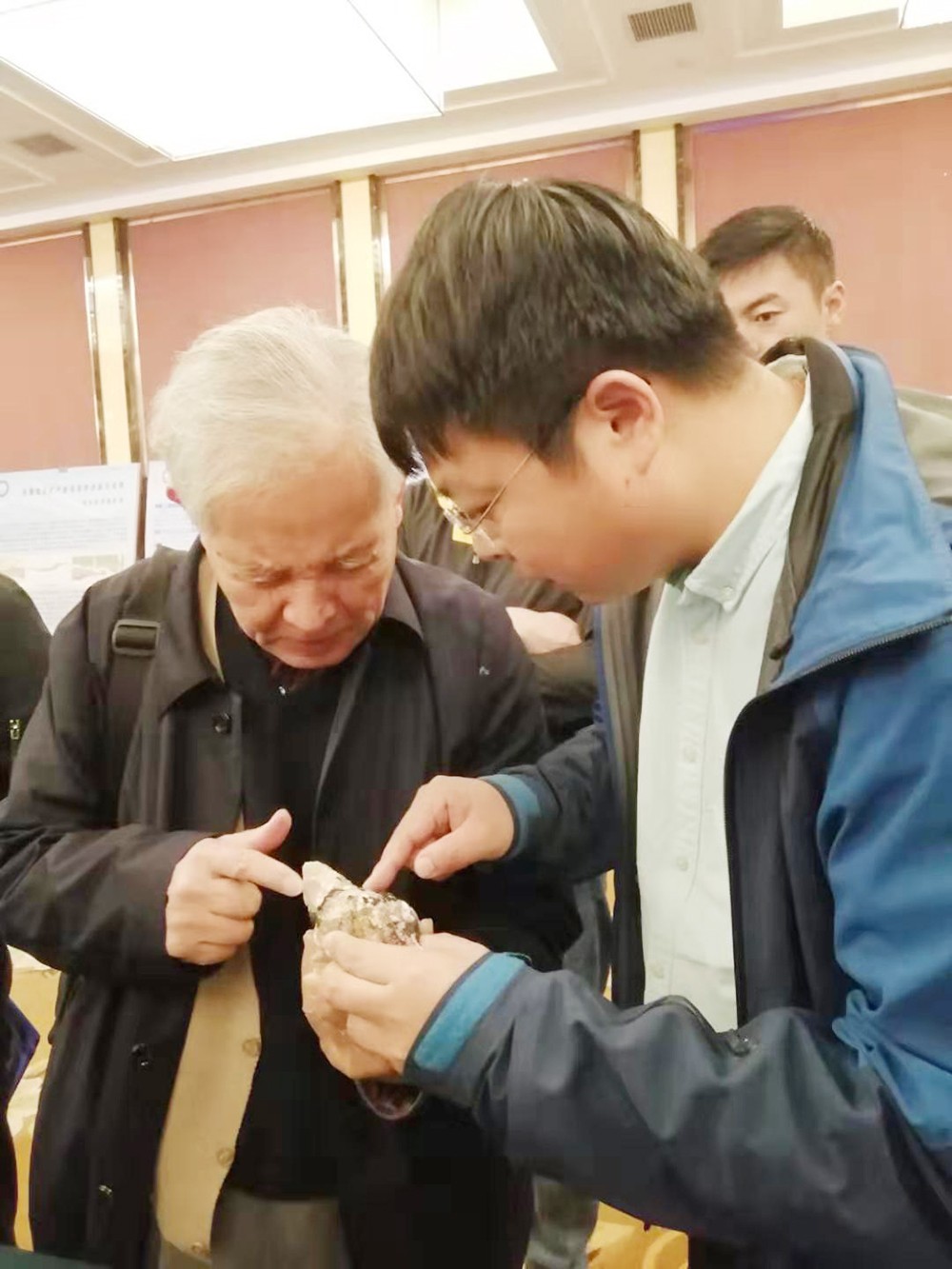 南疆地區(qū)大型資源基地調(diào)查團(tuán)隊(duì)負(fù)責(zé)人高永寶向張國(guó)偉院士介紹礦石標(biāo)本情況