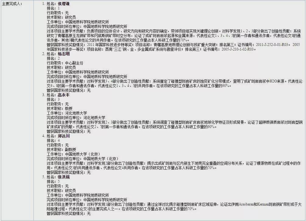 獎勵(lì)大會上,2019年度國家科技獎勵(lì)其他獎項(xiàng)也一一揭曉并頒獎,其中,國家自然科學(xué)獎46項(xiàng),包括一等獎1項(xiàng)、二等獎45項(xiàng);國家技術(shù)發(fā)明獎65項(xiàng),包括一等獎3項(xiàng)、二等獎62項(xiàng);國家科學(xué)技術(shù)進(jìn)步獎185項(xiàng),包括特等獎3項(xiàng)、一等獎22項(xiàng)、二等獎160項(xiàng);中華人民共和國國際科學(xué)技術(shù)合作獎授予英國、美國、俄羅斯、意大利、奧地利、芬蘭、挪威、巴基斯坦等國的10位科學(xué)家。5個(gè)地學(xué)組項(xiàng)目榮獲國家自然科學(xué)二等獎,各項(xiàng)目介紹如下: