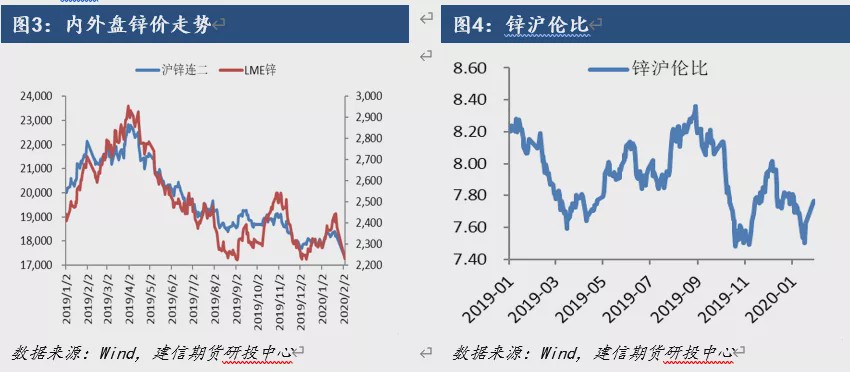 鋅冶煉廠開(kāi)工率影響較小。當(dāng)前鋅冶煉廠依舊維持高利潤(rùn)狀態(tài),利潤(rùn)刺激冶煉廠開(kāi)工率維持高位水平,2019年由于市場(chǎng)礦供應(yīng)充裕,冶煉廠未進(jìn)行冬儲(chǔ),12月份冶煉廠的原料保障水平29.6天,后期冶煉廠開(kāi)工率能否保證來(lái)源于原料運(yùn)輸是否受限?紤]到正月十五后疫情或?qū)⒊霈F(xiàn)拐點(diǎn),交通管控進(jìn)一步升級(jí)可能性較小,隨著正月十五后各地開(kāi)工,原料運(yùn)輸將有保障,SMM統(tǒng)計(jì)春節(jié)期間冶煉廠生產(chǎn)保持穩(wěn)定,整體判斷后續(xù)