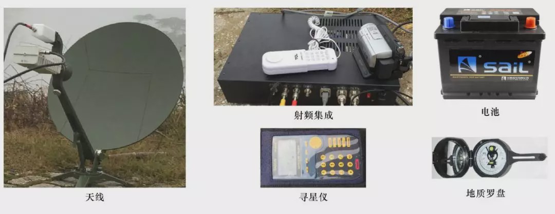 野外地質(zhì)調(diào)查數(shù)據(jù)實(shí)時(shí)傳輸系統(tǒng)”。該系統(tǒng)設(shè)計(jì)為背包式便攜終端,即整個(gè)系統(tǒng)放置于一個(gè)背包中,包含天線、射頻集成、Modem等所有通信功能的設(shè)備,以及野外應(yīng)急數(shù)據(jù)采集及傳輸所需的核心設(shè)備,即衛(wèi)星通信基帶單元、數(shù)據(jù)處理單元等,可完全滿足野外數(shù)據(jù)采集傳輸?shù)幕竟δ堋F渌O(shè)備包括攝像機(jī)、電話、尋星儀、地質(zhì)羅盤和供電設(shè)備等。